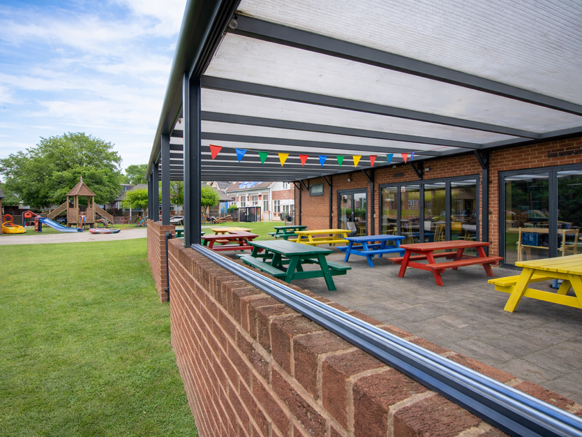 Nursery canopies support free-flow outdoor play, protected learning zones and safe shaded areas, enabling early years providers to meet EYFS outdoor requirements while maintaining safeguarding and supervision standards.